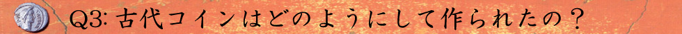 A3:古代につくられたコインには打刻でつくられたものと鋳造でつくられたものがあります。
