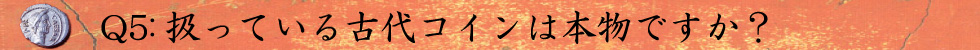 A5:はい、古代コインギャラリー Parisii パリシーが扱っております古代コインは全て本物です。