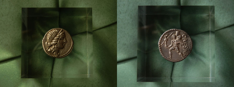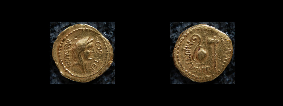 貨幣発行の職人たちが、カエサルの軍団に付随していたのか、現地の職人に発行を委託したのかは定かではない。