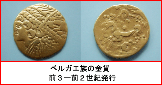 このような揺籃期のガリアの社会共同体に、ガリア傭兵たちがもたらしたスタテル金貨が流れ込み、それを手にしたガリアの権力者は貨幣の有効性、利便性に気づき、部族単位で独自の貨幣を発行するに至ったのでした。