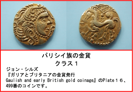 2003年にはシルズがパリシイ族の研究を含んだ「ガリアと初期ブリタニアの金貨発行」という論文で新たなパリシイ族の貨幣のクラス分けを行いました。しかしこの論文では、パリシイ族の貨幣発行所をA,B,Cの3つに分け、さらにその中でクラス分けをするという複雑なものでありますので、本ページでは、シルズの研究でも基礎となっているコルベール・ドゥ・ボウリュウの分類を取り上げたいと思います。