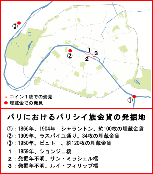 いっぽうパリにおいては、パリシイ族の金貨の発見の事例が数多く見られるのです。
