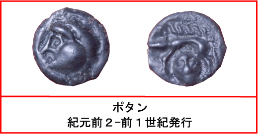 ブロンズ貨に関しては、北ガリアのブロンズ貨は、ポタンと呼ばれると鋳造貨と打刻貨があり、パリシイ族も、鋳造貨と打刻貨の両方を発行しました。20世紀初頭の研究では、すべてのブロンズ貨はガリア戦争後、金貨の発行が不可能になり、その代替としてブロンズ貨を発行し始めたと考えられていました。しかしここ20年で北ガリアの独立時代に居住されていた場所の発掘が進み、鋳造貨の発行はすでに紀元前2世紀には始まっていたことがわかりました。