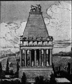 前4世紀、小アジアのカリア地方のマウソロス王が自身と妃のために建造した大理石の霊廟。高さ約34mのギリシャ神殿風の大霊廟で奢侈な彫刻が施されていた。15世紀頃十字軍によって解体されてしまった。