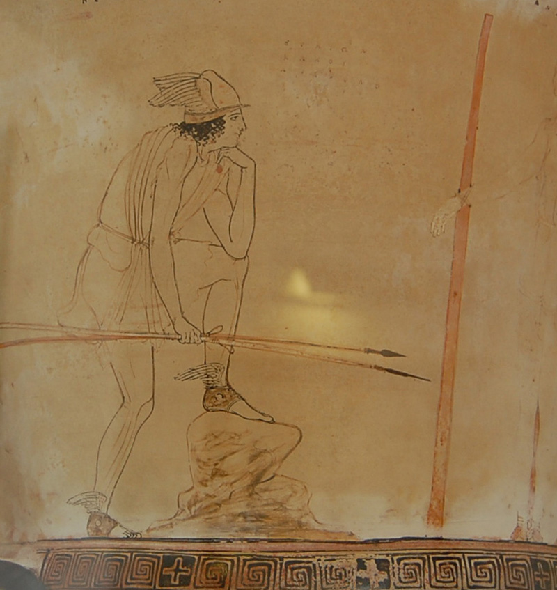ヘルメスが描かれた前440-前430年頃の壺絵 アクラガス考古学博物館 (店主撮影)