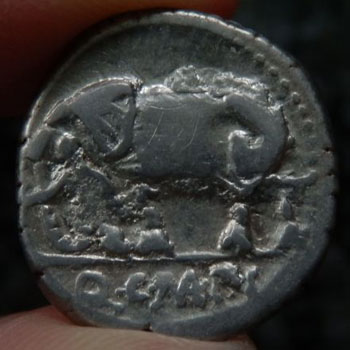 カエキリウス家の人物が発行した他のコインにも象が刻まれている。カエキリウス家にとって、象はシンボルであったことがうかがえる。