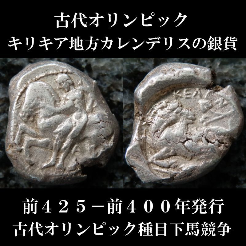古代ギリシャコイン キリキア地方カレンデリス スタテル銀貨 前425-前400年発行 古代オリンピック種目下馬競争のコイン