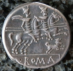 この神話に関連してなのか、このデナリウス銀貨のウラ面にはディオスクロイが刻まれている。