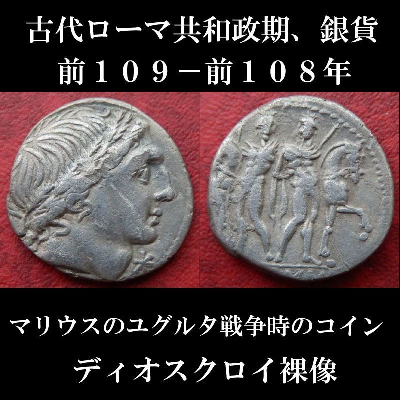 古代ローマコイン 共和政期 ルキウス・メミウス デナリウス銀貨 前109-前108年 ディオスクロイの裸像 マリウス、ユグルタ戦争時のコイン