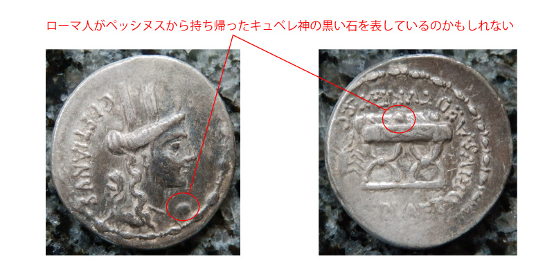 ローマ人は、ペッシヌスでキュベレ神の化身であると信じられた黒い石(隕石)を受け取り、船に載せて持ち帰った。