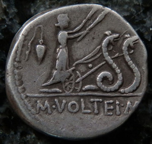ウラ:M VOLTEI M F (Marcus Volteius Marci Filius マルクス・ウォルティウス マルクスの息子)