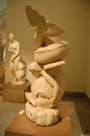イルカは海から誕生したアフロディーテ(ウェヌス)の聖獣。エロスはアフロディーテの子供であるため、よくイルカと共に表される。