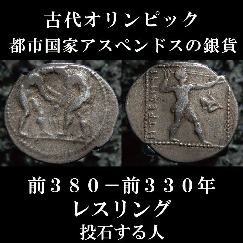 古代ギリシャコイン(額装付き) パンフィリア地方アスペンドス スタテル銀貨 前380-前330年発行 レスリング 古代オリンピックのコイン