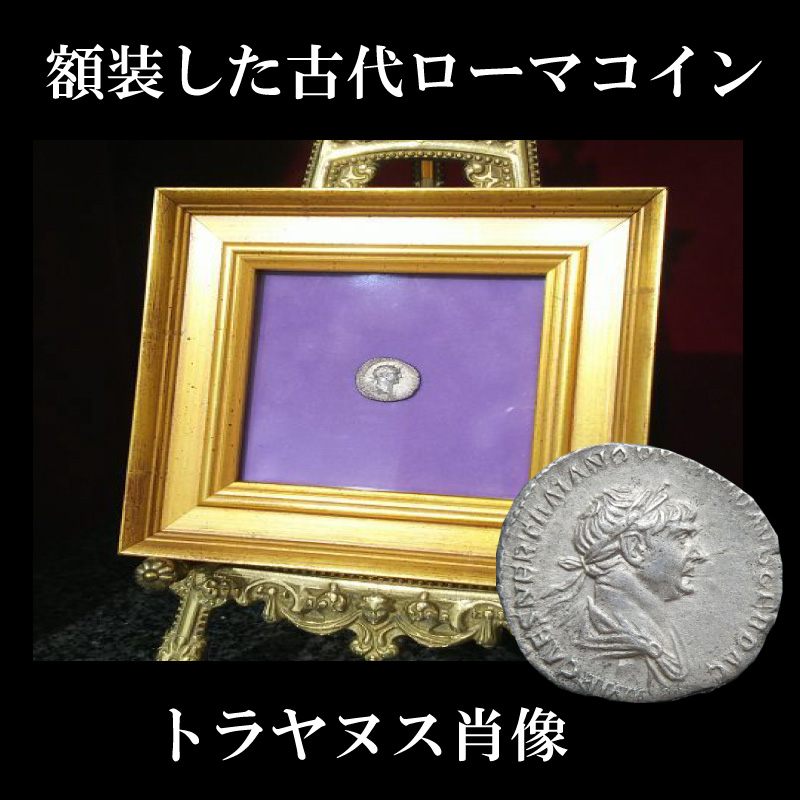 古代ローマコイン 帝政期 トラヤヌス デナリウス銀貨 (額装付き)