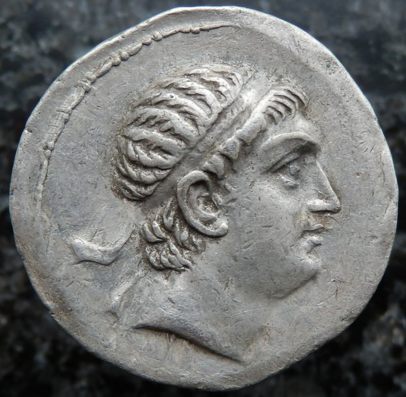 グレコ・バクトリア王国、3代目の王エウテュデモスの銀貨。