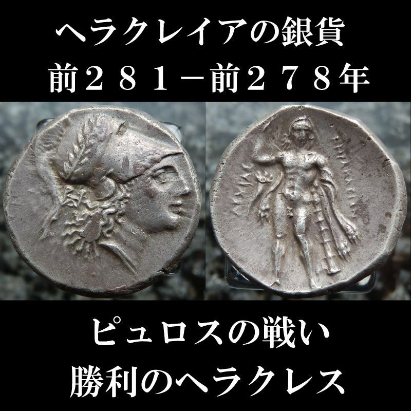 古代ギリシャコイン ルカニア地方 ヘラクレイア 前281-前278年 スタテル銀貨 勝利のヘラクレス ローマとの戦争、ピュロスの戦いのコイン
