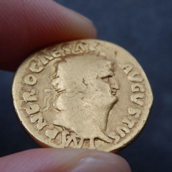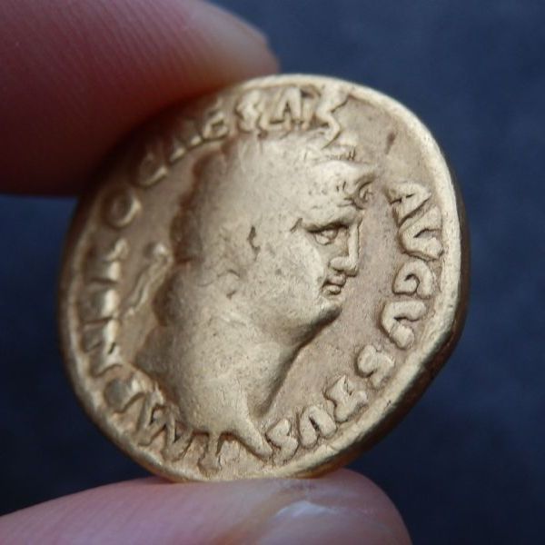 暴君として知られる皇帝ネロのアウレウス金貨(=25デナリウス銀貨)。