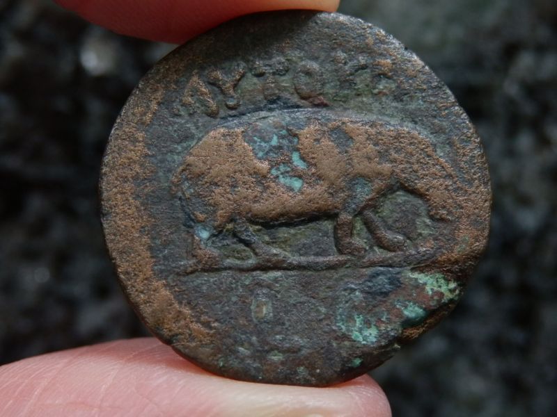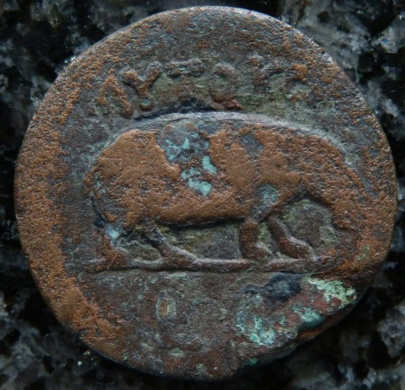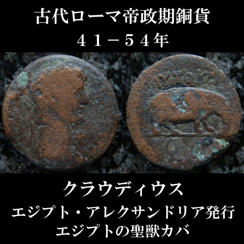古代ローマコイン 帝政期 クラウディウス 銅貨 41-54年 エジプト・アレクサンドリア発行 クラウディウス肖像 カバ