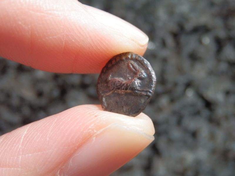 コインについて:オモテ面はうさぎが刻まれ、ウラ面にはREC(レギウムを表す)の文字が鏡文字になっている、大変珍しいコインです。日本の貨幣にも見られる逆打ちのような思想が古代イタリアにもあったことを思わせる、興味深い1枚です。
