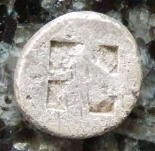 古代ギリシャコイン トラキア タソス島 オボル銀貨 (額装付き)