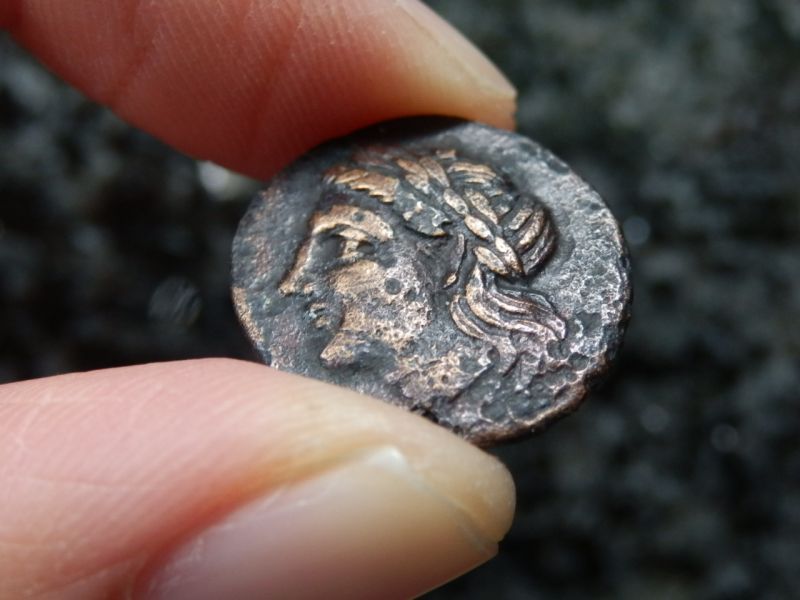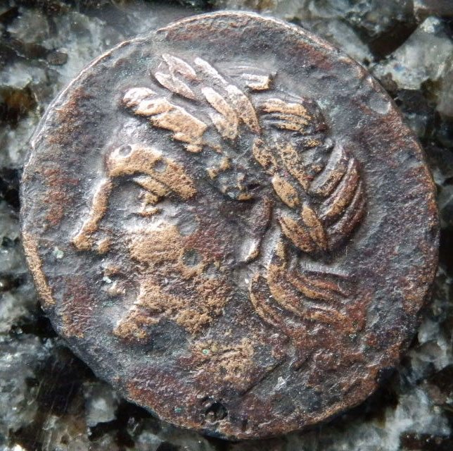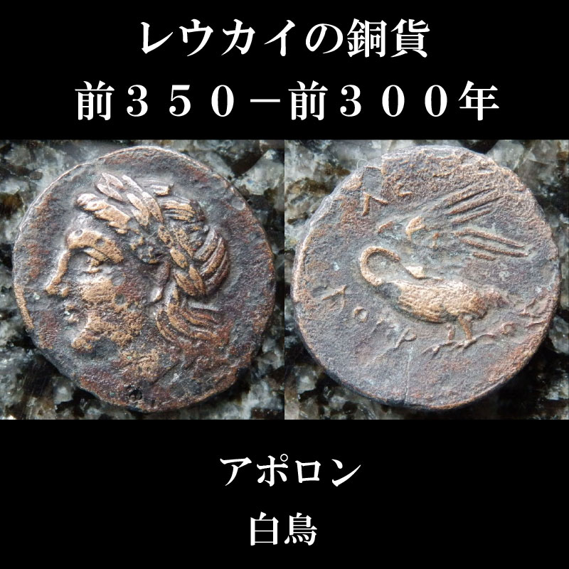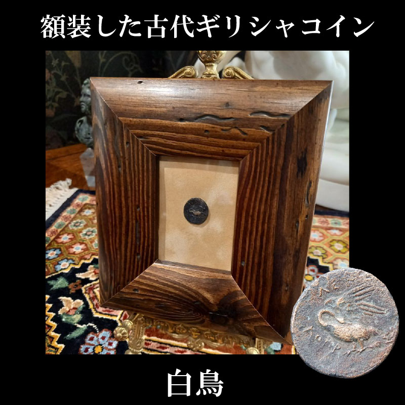 古代ギリシャ時代イオニア地方レウカイのアポロンと白鳥の銅貨を額装して販売中