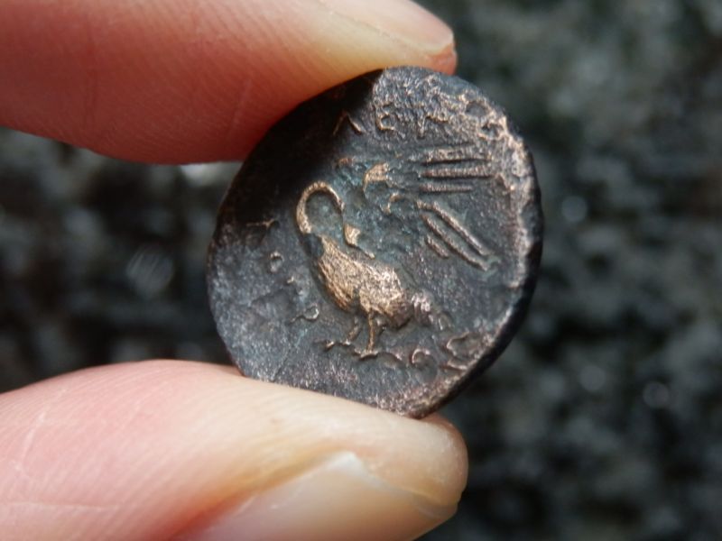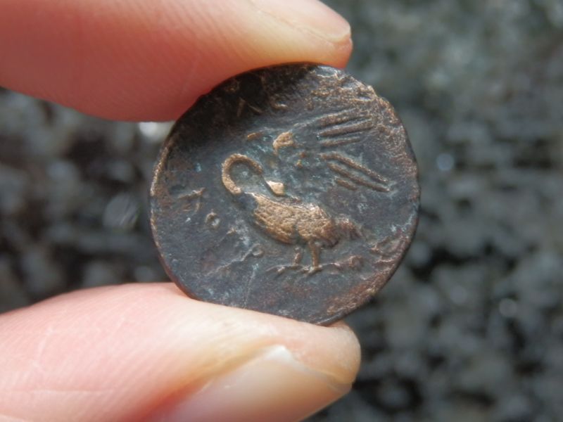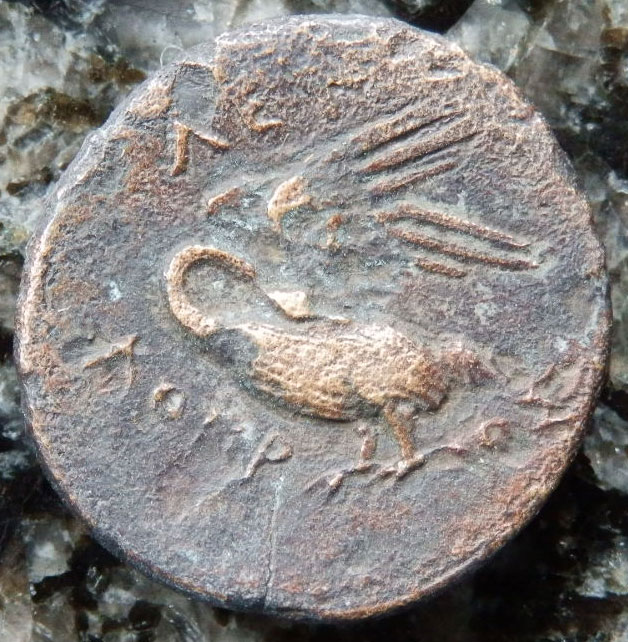 古代ギリシャコイン(額装付き) イオニア地方 レウカイ 銅貨 前350-前300年 アポロンと白鳥