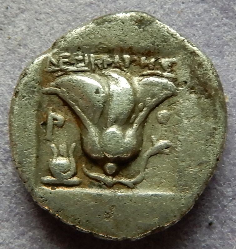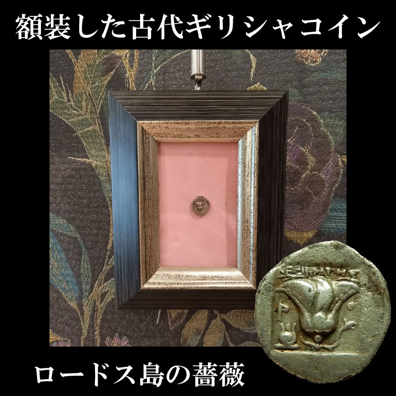 古代ギリシャコイン カリア地方 ロードス島 半ドラクマ銀貨 (額装付き)