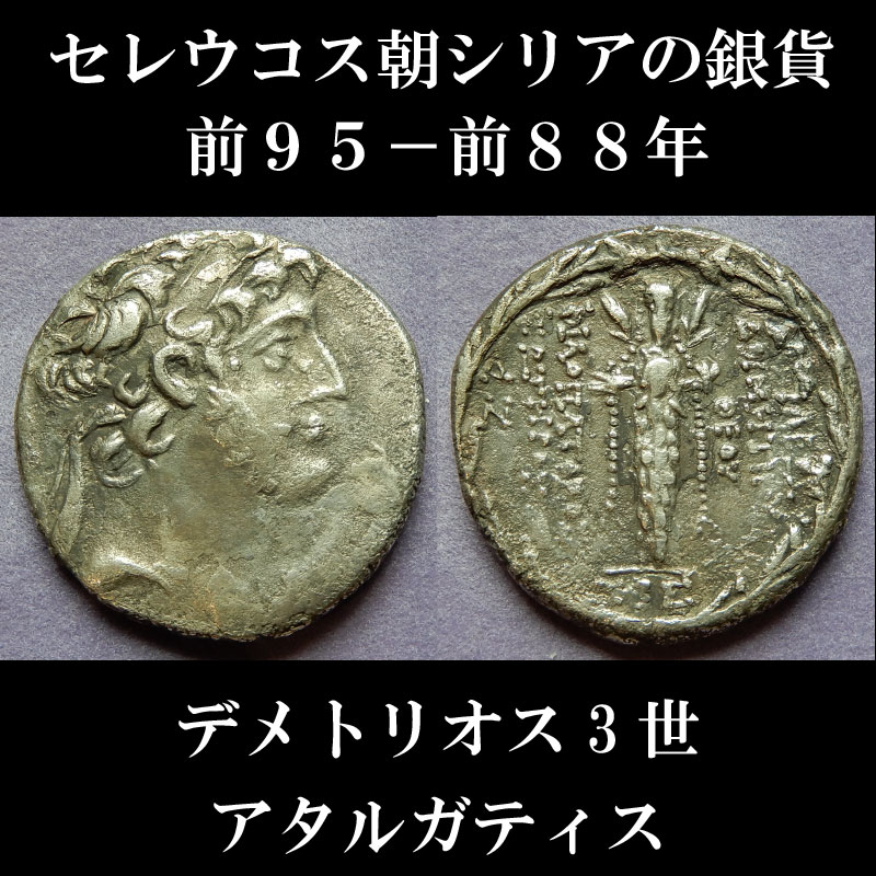 古代ギリシャコイン セレウコス朝シリア デメトリオス3世 テトラドラクマ銀貨 前95-前88年 デメトリオス3世肖像 アタルガティス