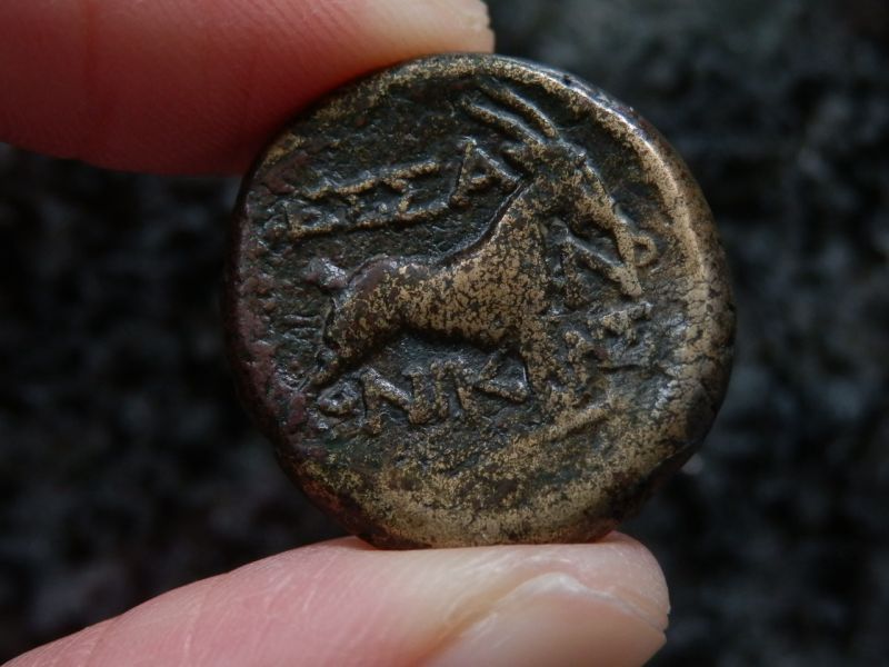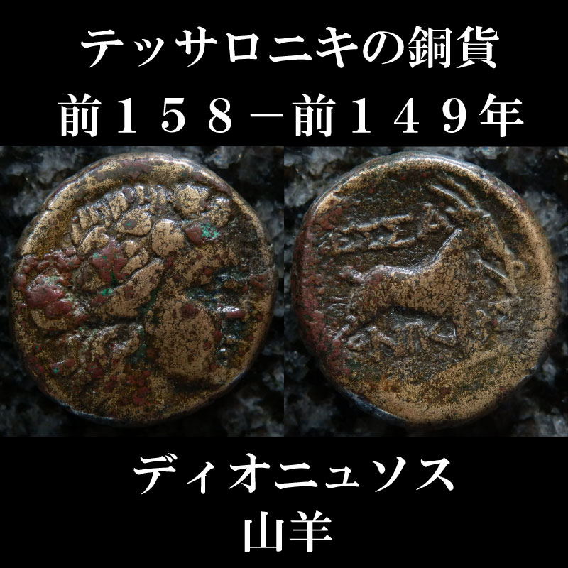 古代ギリシャコイン マケドニア・テッサロニキ 銅貨 前158-前149年 ディオニソス神肖像 ヤギ
