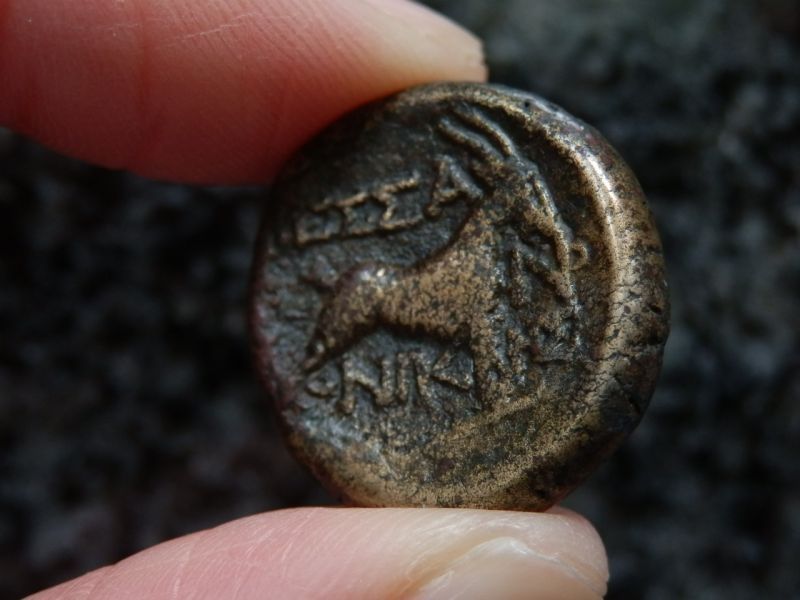 ウラ:ΘEΣΣ ΛONIKHΣ 右向きのヤギ
