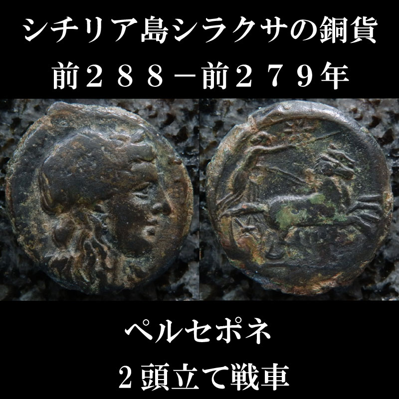 古代ギリシャコイン シチリア島 シラクサ 銅貨 前288-前279年 ペルセポネ 2頭立て戦車