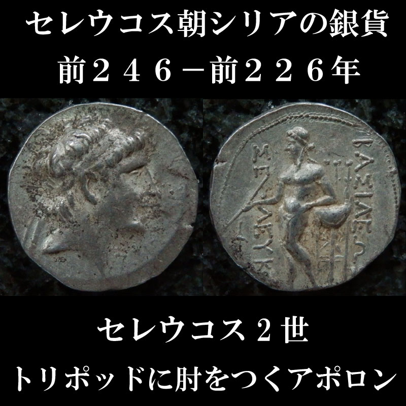 古代ギリシャコイン セレウコス朝シリア セレウコス2世 前246-前226年 テトラドラクマ銀貨 セレウコス2世の肖像 トリポッドに肘をつく裸のアポロン