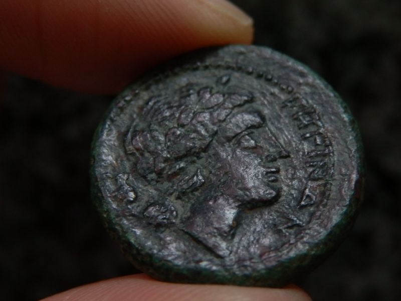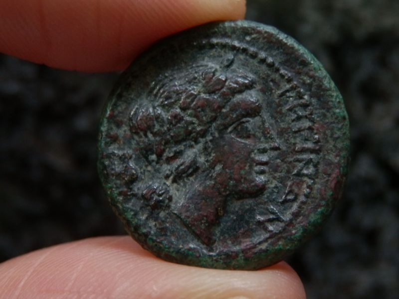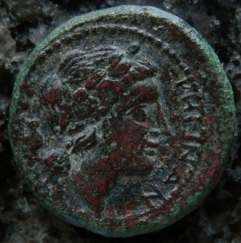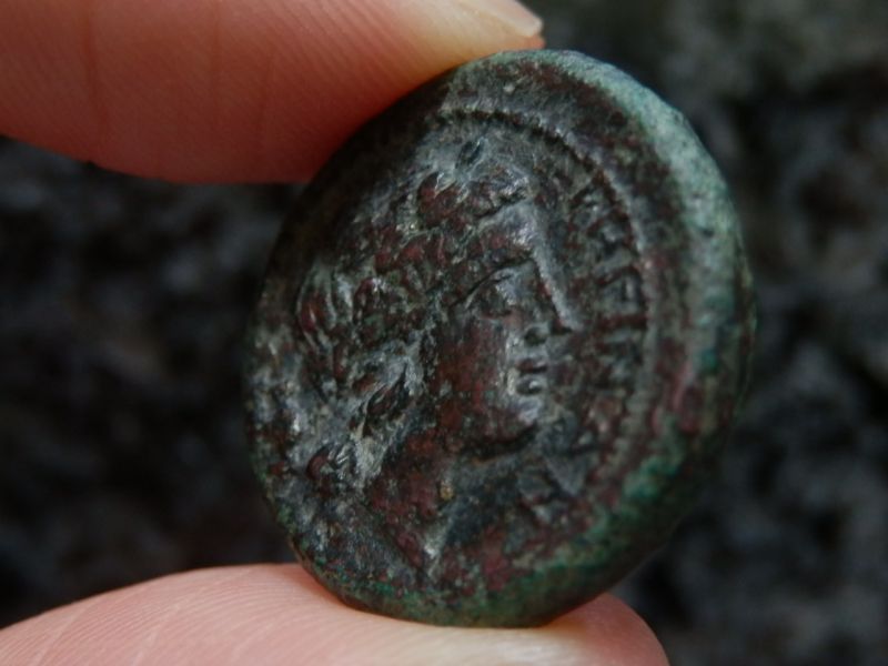 ウラ:PHΓINΩN(レギウムの) 月桂冠をつけた右向きのアポロン肖像 首の後ろに小さなイルカ?