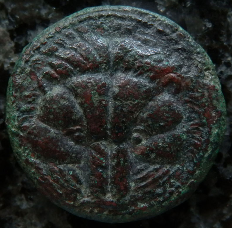 古代ギリシャコイン ブルッティウム レギウム 前350-前270年 上から見たライオンの頭の毛皮 アポロン