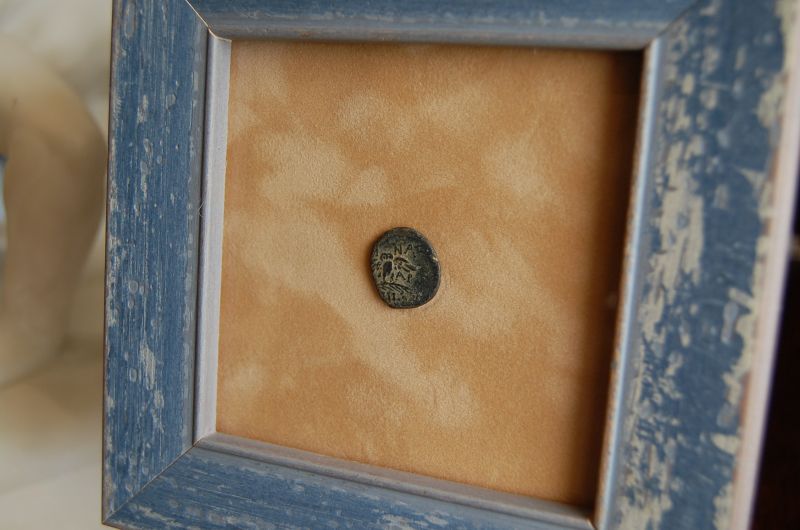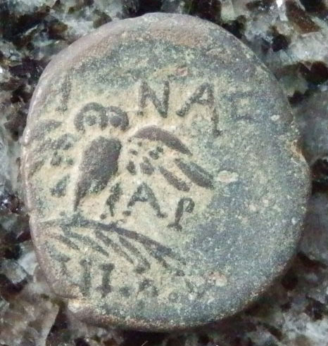 古代ギリシャコイン(額装付き) ミュシア地方 ペルガモン 銅貨 前123-前100年 翼を広げたフクロウ