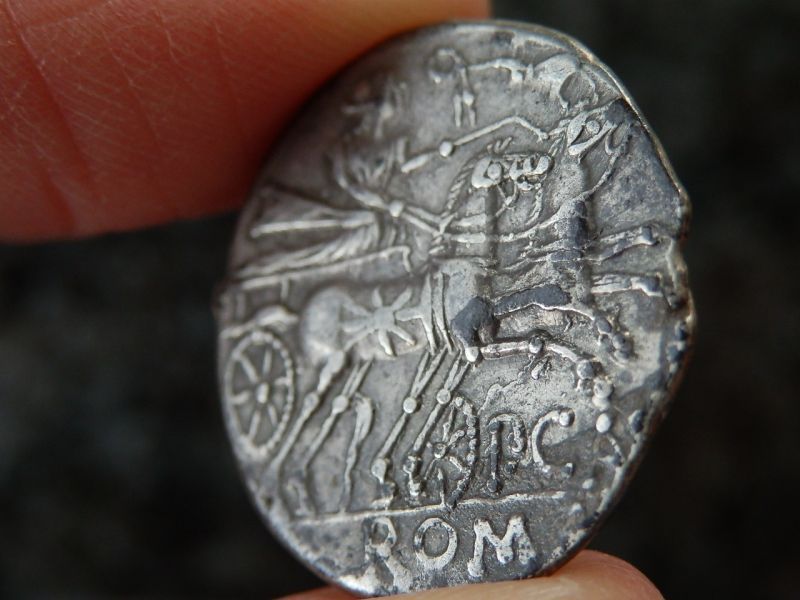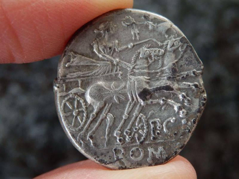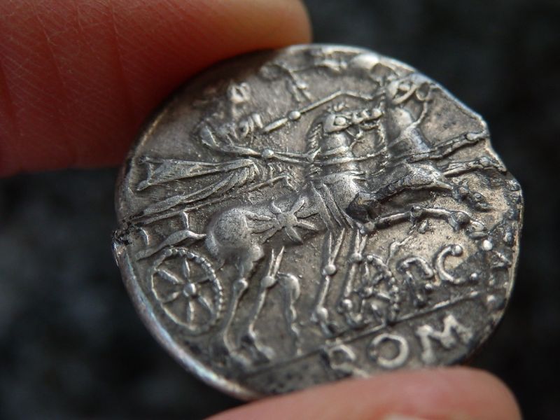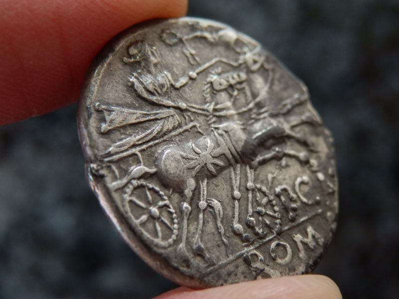 古代ローマコイン 共和政期 前133年 プブリウス・カルプルニウス デナリウス銀貨 ローマ神の肖像 2頭立て戦車を操るウェヌス神