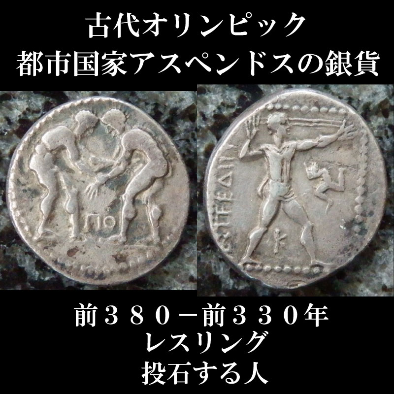 古代ギリシャコイン パンフィリア アスペンドス スタテル銀貨 前380-前330年 古代オリンピック、レスリングの試合が刻まれたコイン